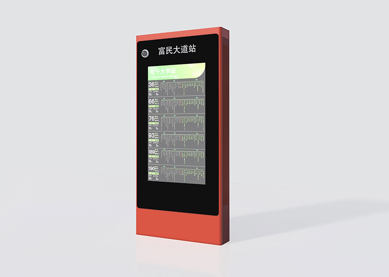 智能公交电子站牌配套在公交候车亭沿线站点位置,主要功能有公交线路信息、车辆位置信息以及车辆运行状态、监控系统、信息发布系统、触摸交互系统、一键报警求助、照明系统、TTS语音、散热系统等组成。