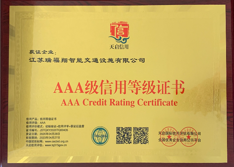 AAA级信用等级证书