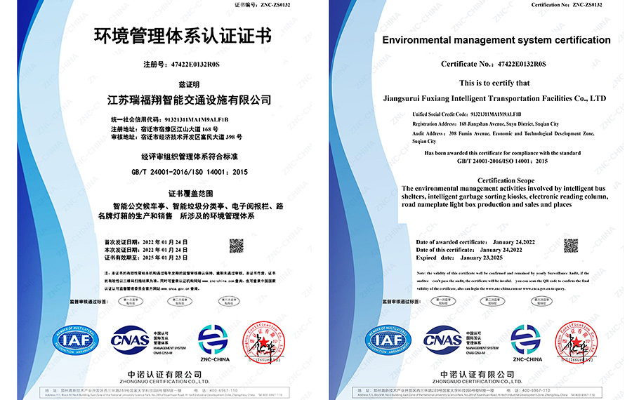 环境管理体系认证证书