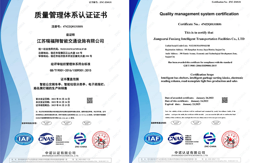 质量管理体系认证证书